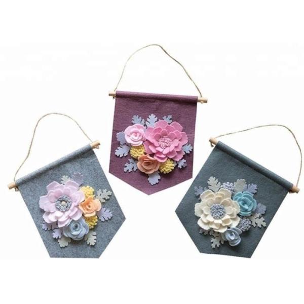 Handmade Felt Wall Hanging Banner Decorative 9.5*9.5 Inch With Flower Decor Images |